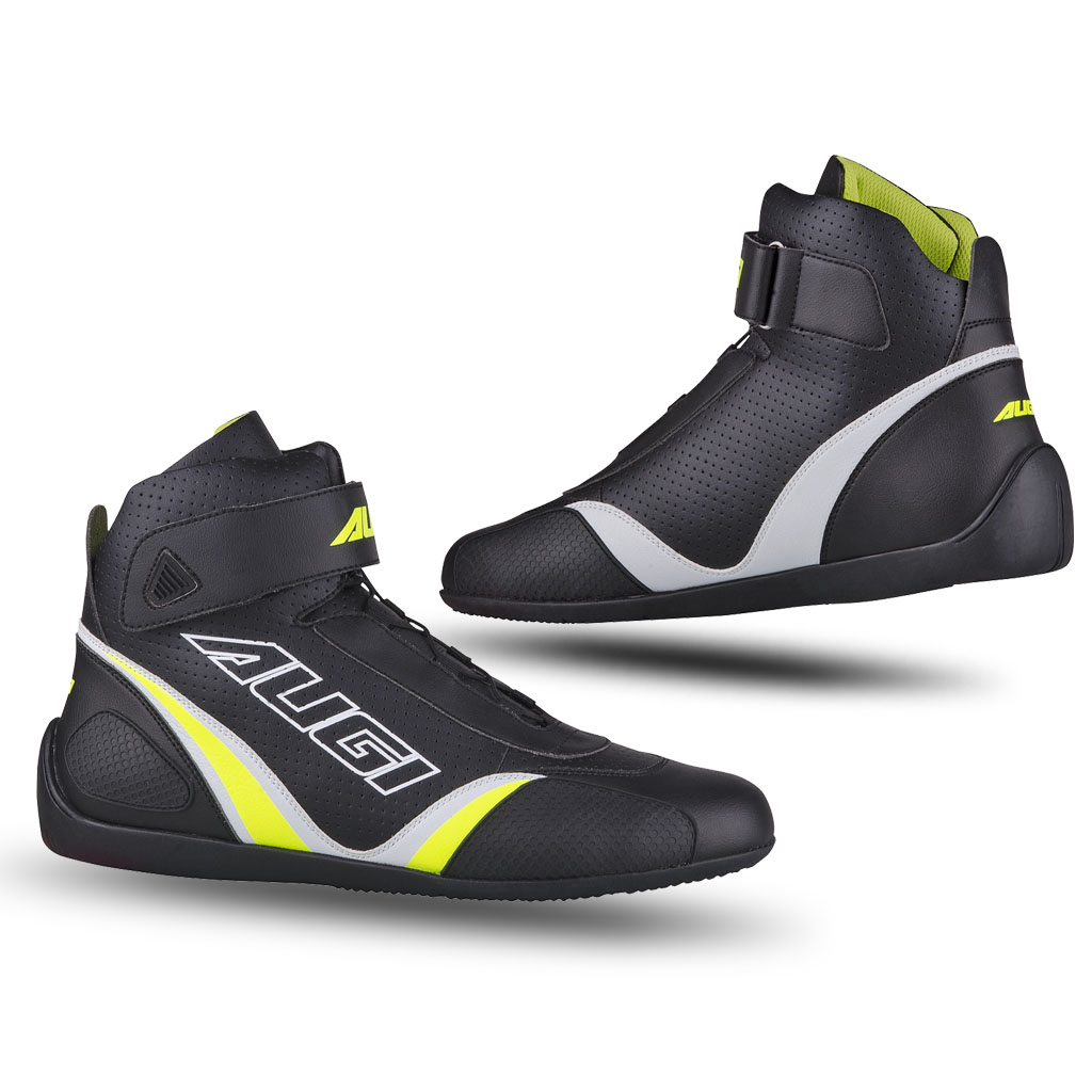 超纖皮革的時尚設計, 採用快拉式的鞋帶, 魔術貼的設計黏貼牢固, 穿脫方便。車靴內襯運用網眼網布加海綿襯底更顯舒適透氣, 鞋後跟加厚處理有雙重保護的效用, 大底採用防滑耐磨橡膠讓騎乘更安全。